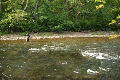 Most of the river is shallow; the bottom structures are formed by boulders or bedrock